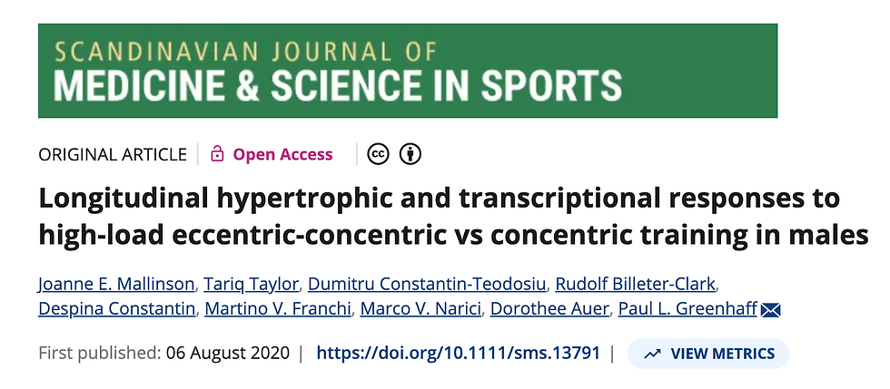 מלינסון (Mallinson) ושותפיו זיהו כי למרות ששני סוגי האימונים מפעילים גנים הקשורים לצמיחה, האימון האקסצנטרי מייצר חתימה גנטית ייחודית: